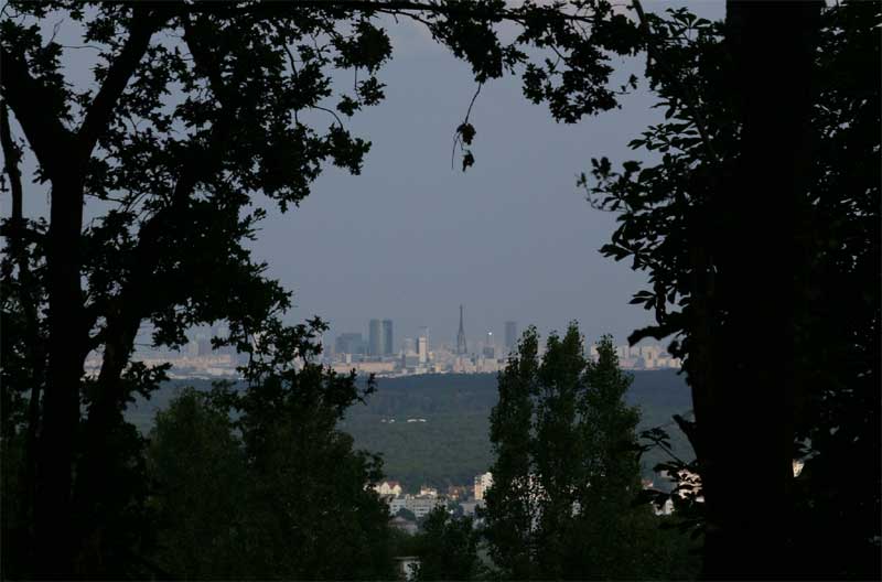 Vue sur PARIS la Défence et sur la tour Eiffel (du Dojo Sarbacana en forêt)
